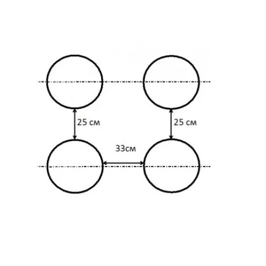 - по горизонталі: 25 см.