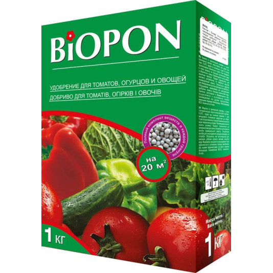 Biopon NPK 5,5-8,5-11,5 + мікроелементи– це гранульоване мінеральне добриво, розроблений для забезпечення оптимального живлення овочевих культур, особливо огірків та помідорів. Збалансований склад добрива забезпечує рослини всіма необхідними макро- та мікроелементами, стимулюючи ріст, розвиток та плодоношення. - Збільшення врожайності - завдяки високому вмісту калію, добриво стимулює закладку зав'язей та збільшує розміри плодів. - Покращення якості плодів - забезпечує підвищену цукристість та аромат плодів. - Стійкість до хвороб - зміцнює імунну систему рослин, підвищуючи їхню стійкість до хвороб та шкідників. - Розвиток кореневої системи - стимулює розвиток потужної кореневої системи, що покращує засвоєння поживних речовин. Добриво підходить для рослин, які вирощуються не лише у відкритому ґрунті, а й у теплицях та пластикових тунелях.