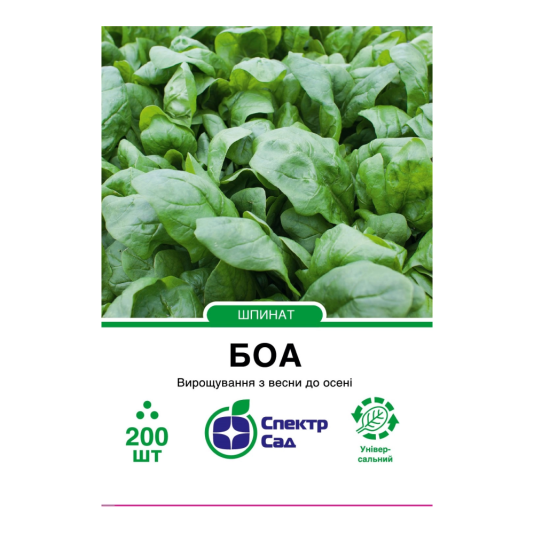 Шпинат Боа - это высокопродуктивный скороспелый гибрид голландской селекции, который можно выращивать в открытом и закрытом грунте. Он имеет темно-зеленые листья округлой формы, нежные и сочные листья. Шпинат Боа неподвержен заболеваниям и хранится длительное время. Это универсальный сорт, который можно использовать для приготовления различных блюд.