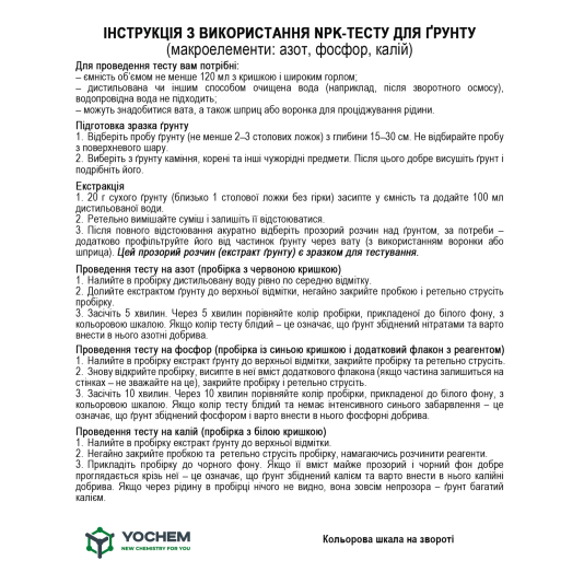 Комплектность теста на плодородие почвы YOCHEM NPK: