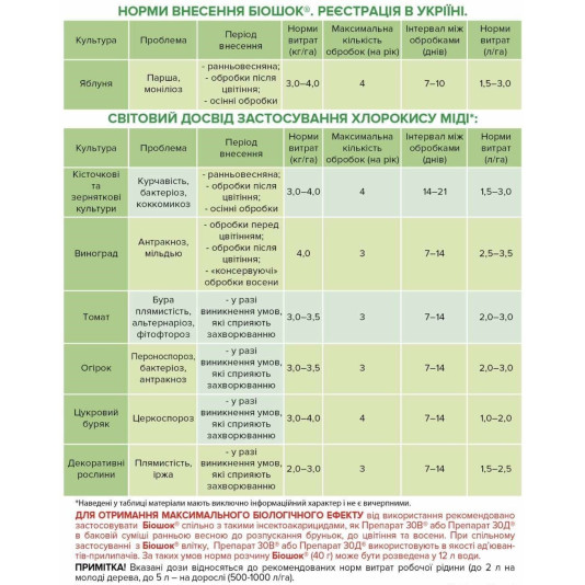 ВАЖНО! Для получения максимального биологического эффекта от использования рекомендуется применять Биошок совместно с такими инсектоакарицидами, как Препарат 30В или Препарат ЗОД в баковой смеси ранней весной до распускания почек, до цветения и осенью. При совместном применении с Биошок летом, Препарат 30В или Препарат 30Д используют в качестве адъювантов-прилипателей. При таких условиях норма раствора Биошок (40 г) может быть доведена до 12 л воды.