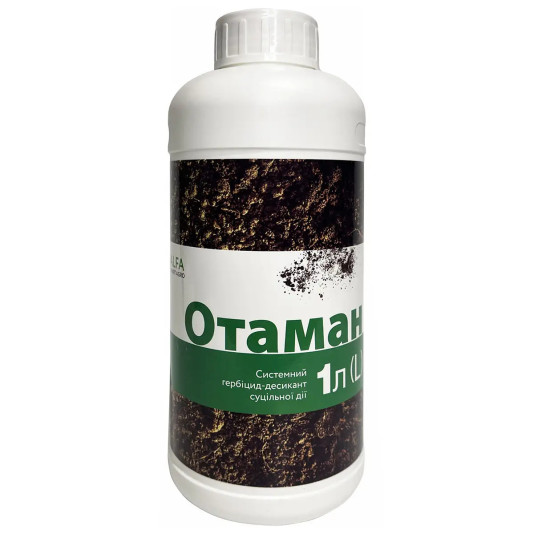 Отаман - системный гербицид-десикант сплошного действия. Преимущества - Высокая эффективность десикации и контроля однолетних и многолетних сорняков - Быстрое действие на сорняки - Длительный защитный период - Низкая себестоимость применения Механизм действия Препарат подавляет белковый синтез в клетках растений, в результате чего происходит ингибирование синтеза хлорофилла с последующим отмиранием растений. Благодаря современному поверхностно-активному веществу гербицид Атаман быстро и эффективно проникает через листья и другие зеленые части растения и разносится по всем органам к корневой системе. Полная гибель наступает через 10-20 дней, в зависимости от погодных условий, вида, стадии развития сорняков и нормы расхода. Сначала наблюдается пожелтение растений, затем листья увядают, растение погибает. Свойства Препарат характеризуется низким уровнем пенообразования при приготовлении рабочего раствора. Это свойство очень актуально при использовании препарата методом малообъемного опрыскивания.
